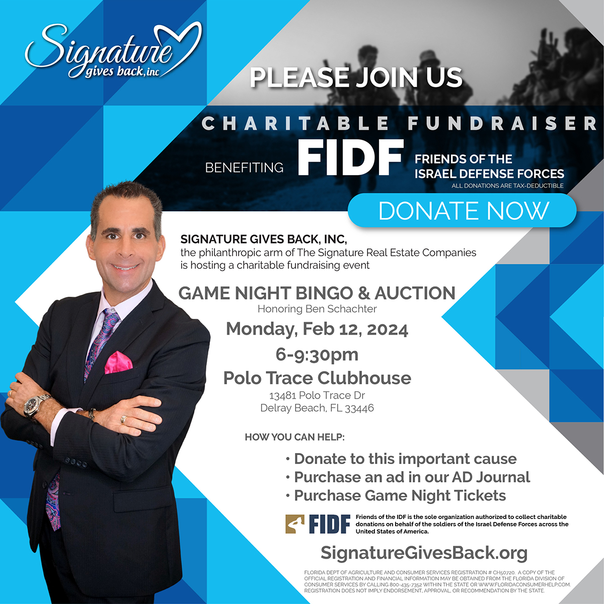Signature Give Back, Inc (SGB), the philanthropic arm of The Signature Real Estate Companies (Signature), is proud to announce that we have chosen BEN SCHACHTER as the honoree for our upcoming charitable fundraising event, 'GAME NIGHT'.