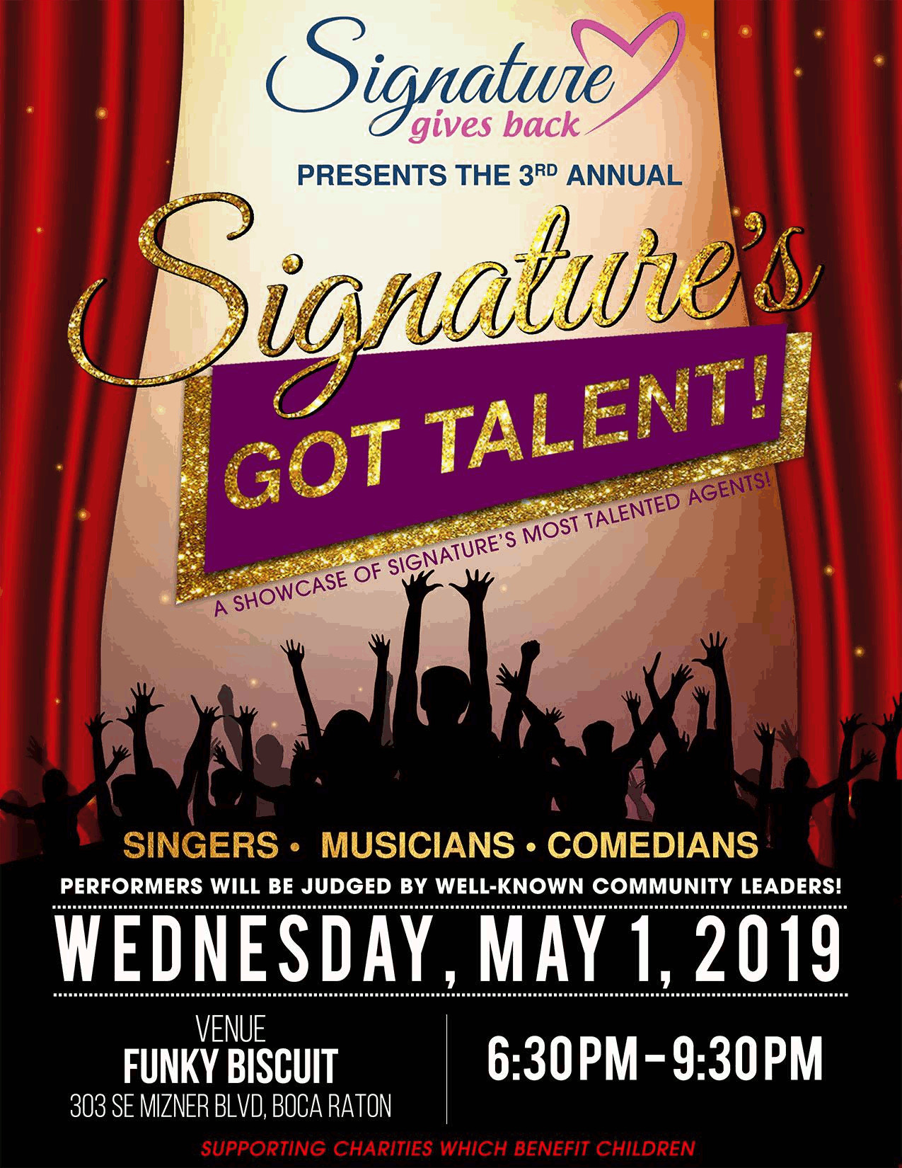 The 3rd Annual Signature’s Got Talent Show at Funky Biscuit proved to be a tremendous success. The event exceeded its fundraising expectations which will benefit both Signature Gives Back AND Best Foot Forward, a remarkable Boca Raton-based charity which empowers foster care youth to maximize their potential by providing essential academic support & guidance.